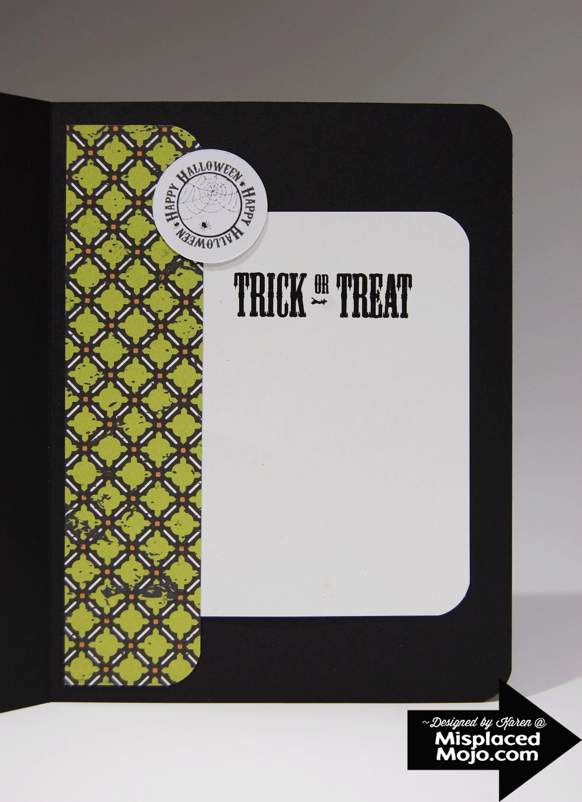 I know what you’re thinking… how many Halloween cards can the woman make in 24 hours?!?  You’d be surprised!  I know I was!!!  Ha!  😉  I didn’t make a thing last week and this week my crafty mojo is on overflow.  I’ve even been dreaming about projects to do!  Ah, but you didn’t come here to analyze my dreams, so I’ll get on with the craftiness… my final Halloween card of the season:
