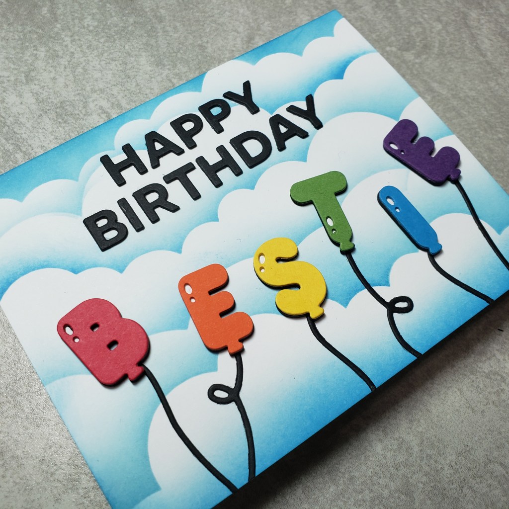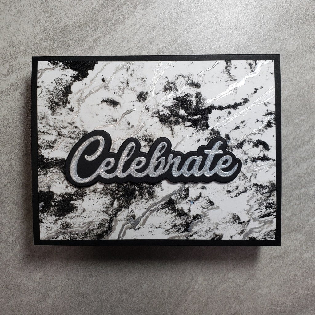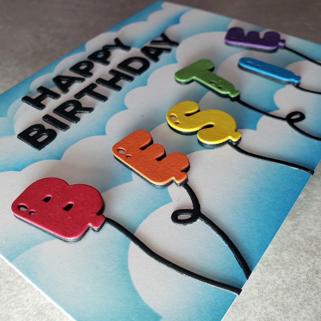 Now, here’s where I admit that I got a little sidetracked on the theme. I got tired playing with the colors I had out and before I knew it I made a rainbow ink blended card panel, complete with sparkle embossing powder by Wow! over all the balloons. Not wanting my efforts to go to waste, I grabbed up that Photoplay Cake die set that was still on my desk and die cut the celebrate sentiment. Now this card could be used as a birthday card or a celebration of a gay couple (male or female). I like the black touches and how it tones down the rainbowy sparkle business a wee bit, but not enough that my gay friends would be disappointed. 😁 The background are just scraps of matching cardstock but you could have easily cut these to be fringed to kick it up a notch! So…. “technically” a gender neutral card. Maybe? (V, consider this your virtual birthday card from me this year cause you sure don’t want anything from my house showing up in your mailbox for awhile! Hope you had a fabulous birthday weekend!!!)
